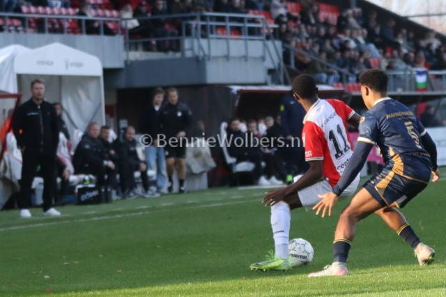 In de 22e minuut kwam FC Emmen toch op voorsprong. Na slordig uitverdedigen bij de bezoekers pikte Alaa Bakir de bal op, dribbelde richting zestien en legde breed op Adam Claridge. De Deense middenvelder haalde verwoestend uit en liet doelman Mark Spenkelink kansloos: 1-0.