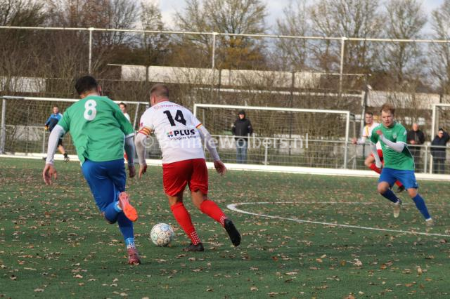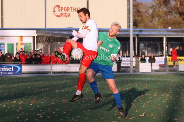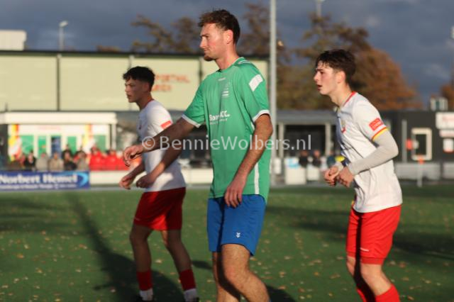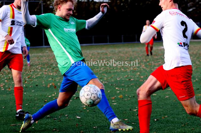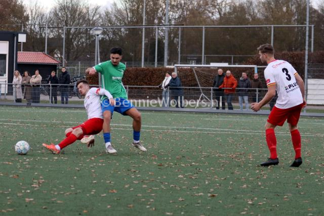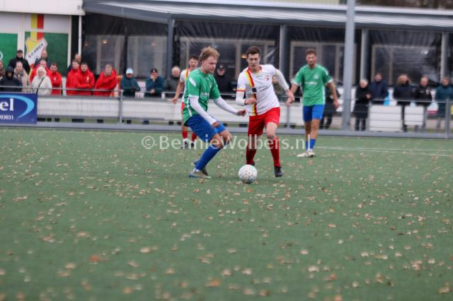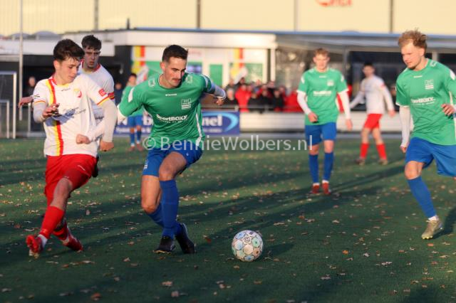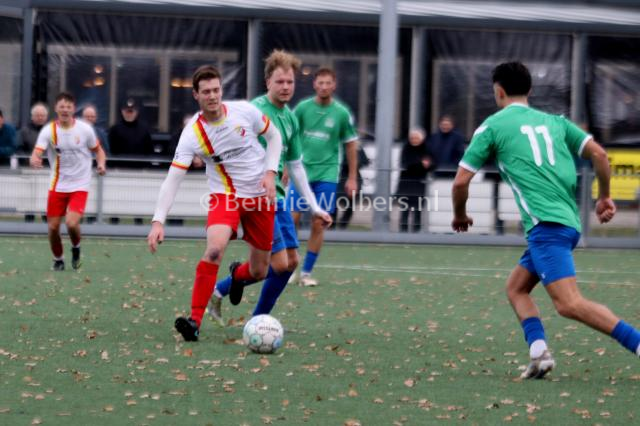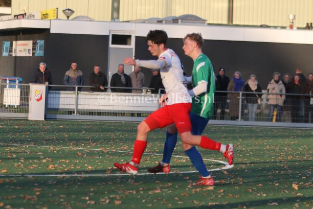 Een kwartier is het weer raak. Syb Lathouwers weet de aan linkerkant opkomende Tom Vehof te bereiken die de bal meeneemt richting achterlijn, het leer terug legt op de mee opgekomen Sem Poelman en knalde die de bal uit de lucht hoog in het doel. 4-0.