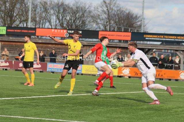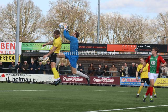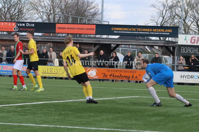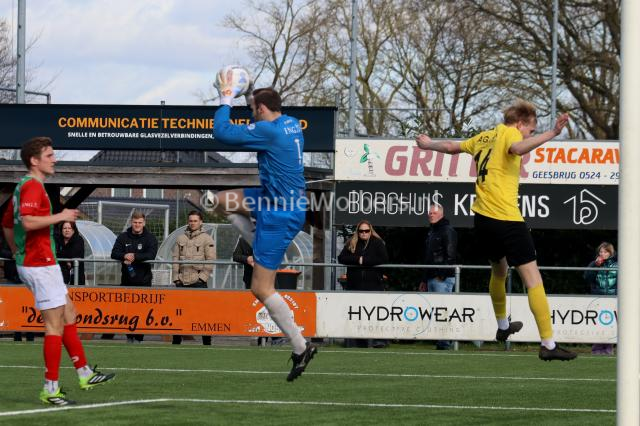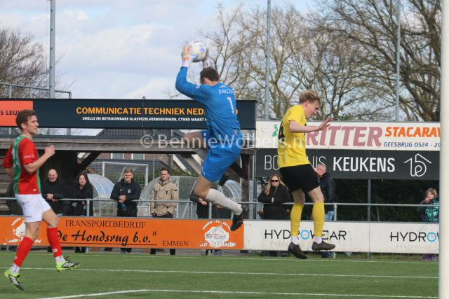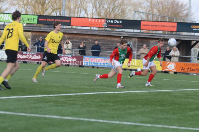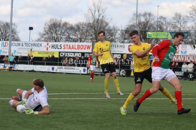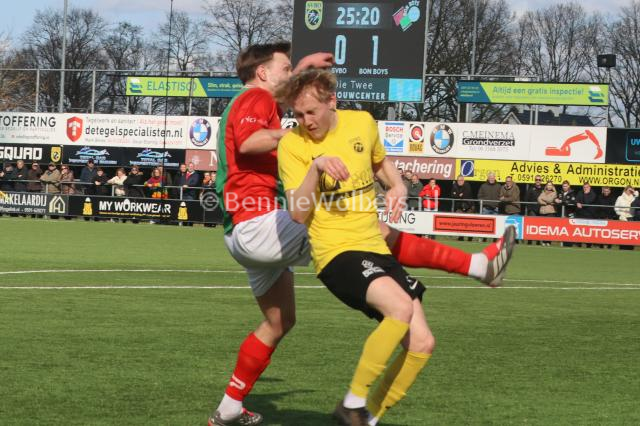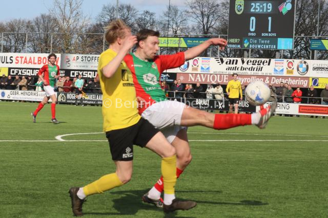 BARGER OOSTERVELD – Het is SVBO zondagmiddag niet gelukt om koploper Bon Boys een pootje te lichten. Op het kunstgras aan de Parkstraat wisten de mannen uit Haaksbergen met 1-0 te winnen. Het doelpunt van Tom ter Hogt viel al in de 21e minuut van de 1e helft, nadat SVBO daarvoor al een tweetal mogelijkheden niet in klinkende munt wist om te zetten. Ook in de 2e helft bood SVBO de koploper veel tegenstand maar om het uiteindelijke doelpuntje dat de geelzwarten gezien de hele wedstrijd zeker wel hadden verdiend, maar niet wilde vallen. Eindstand dus 0-1 en SVBO komende zondag in Vroomshoop tegen de plaatselijke boys proberen die nederlaag snel te doen vergeten.