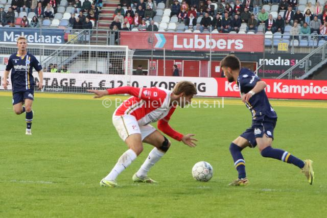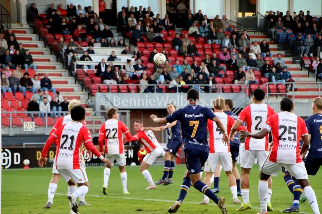 Aan de andere kant lieten vooral de jonge talenten van de rood-witten zich zien. De pas 17-jarige Chiel Sunder bracht energie en lef, al was het vooral de eindfase die nog te wensen overliet. Die andere tiener, Stan Van Manen (18), kreeg de grootste kans voor FC Emmen in de eerste helft, maar toen zijn inzet gekeerd werd stond Freddy Quispel op de juiste plek, maar hij schoot op de al liggende doelman.