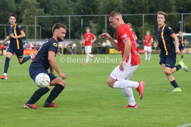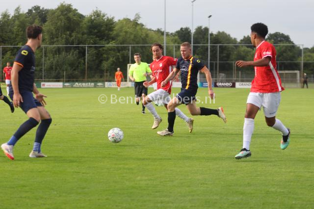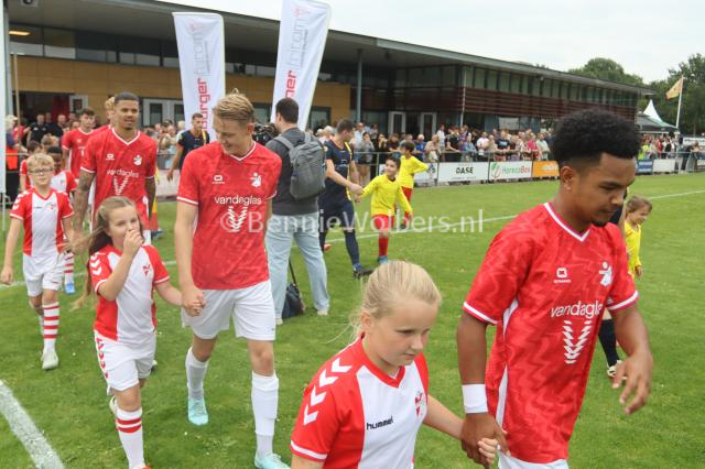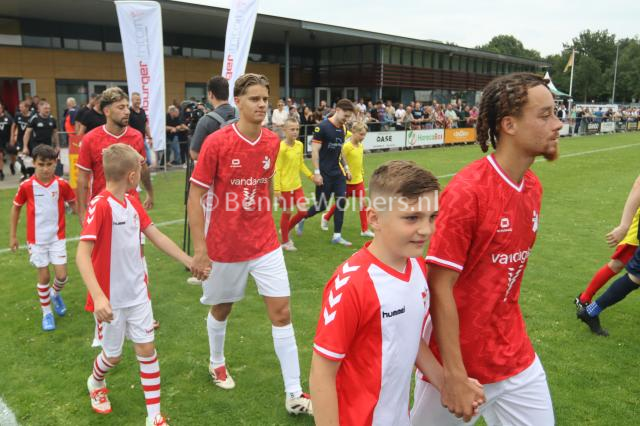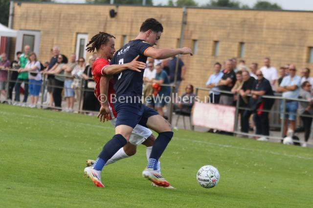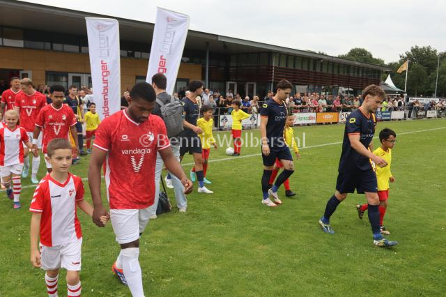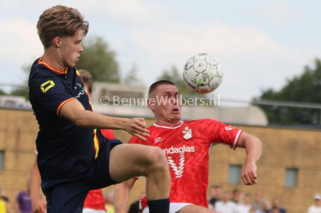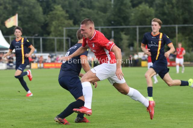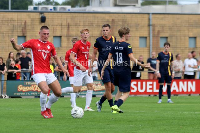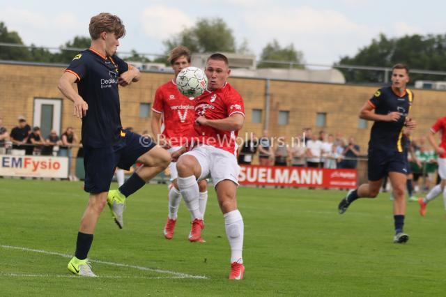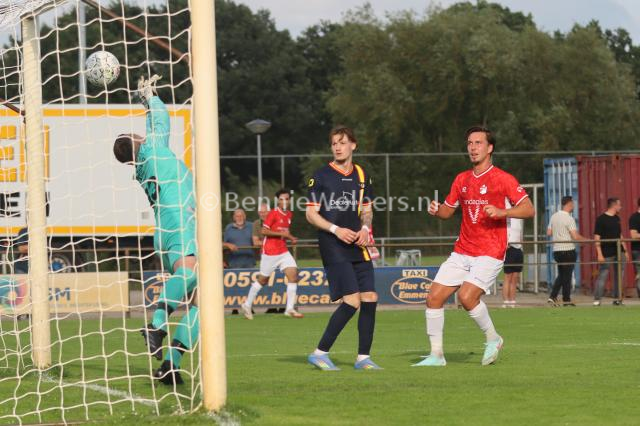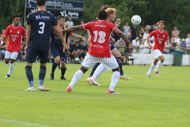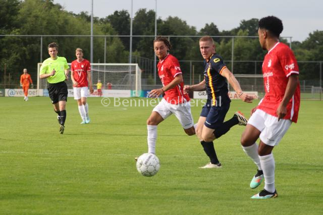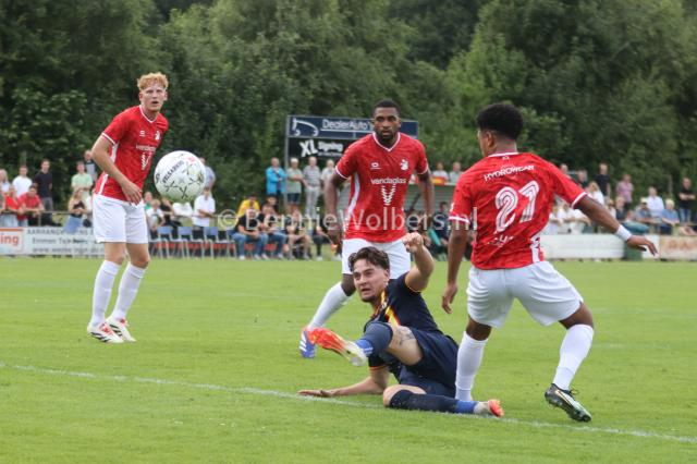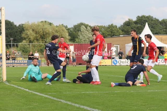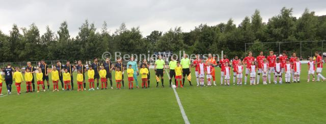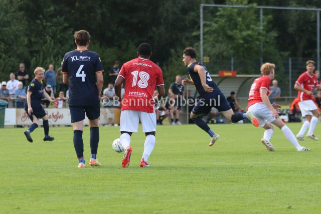 Tegenstand op sportpark Noord (Sc Angelslo) was een samengesteld regioteam dat eindigde in een12-2 overwinning voor de Profclub. FC Emmen, dat aantrad zonder Pascal Mulder en Jalen Hawkins, begon sterk aan de wedstrijd want binnen twintig minuten was doelman Lennon Ebeltjes (SVBO) al vijf keer geklopt.