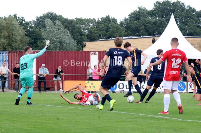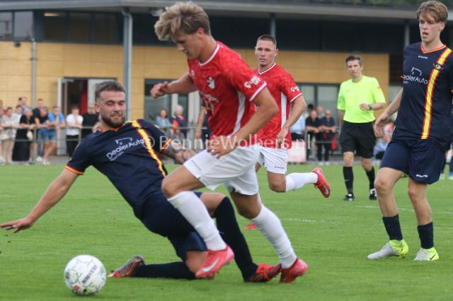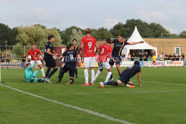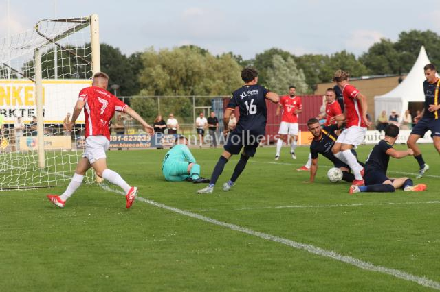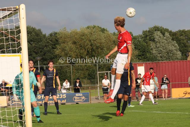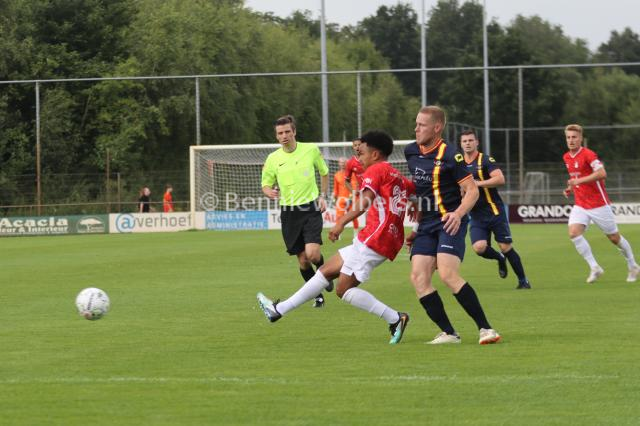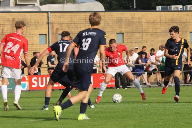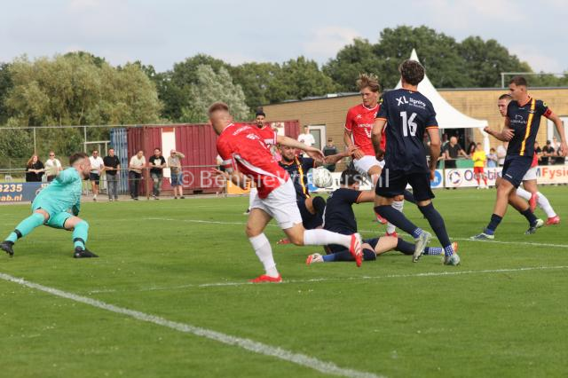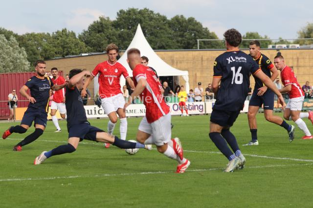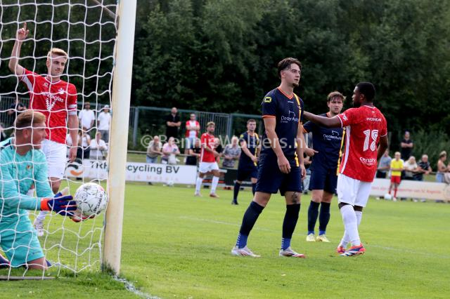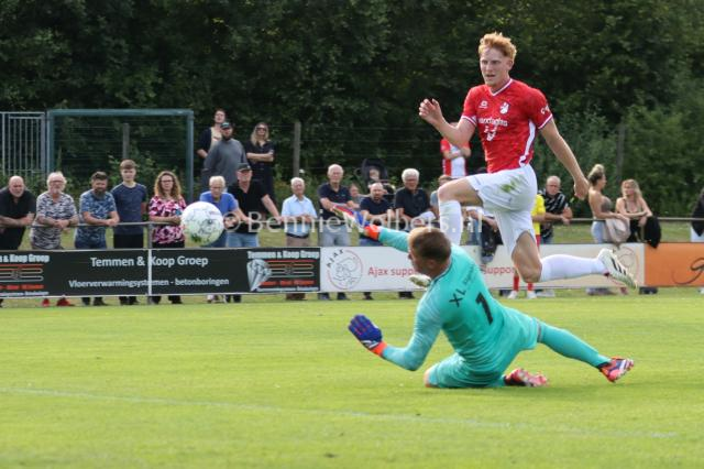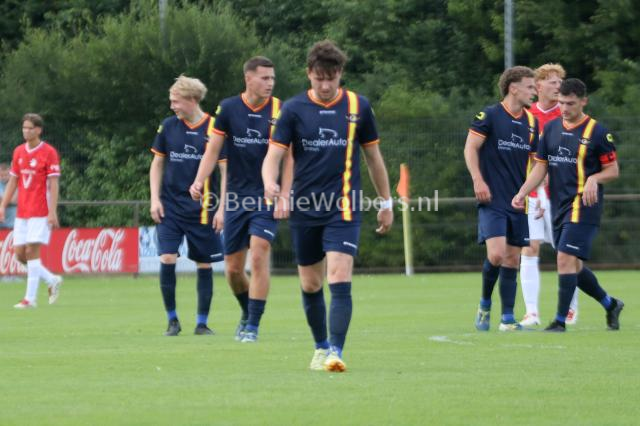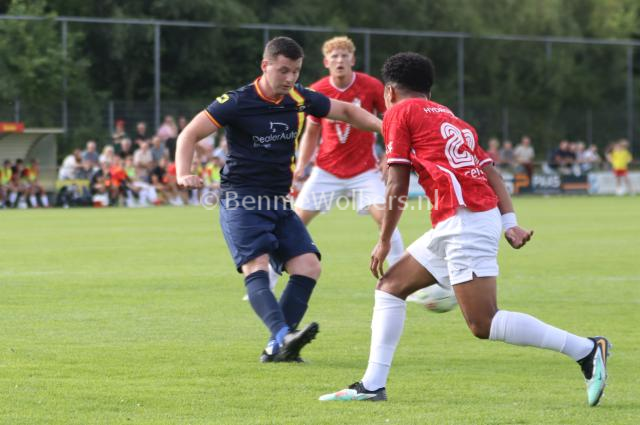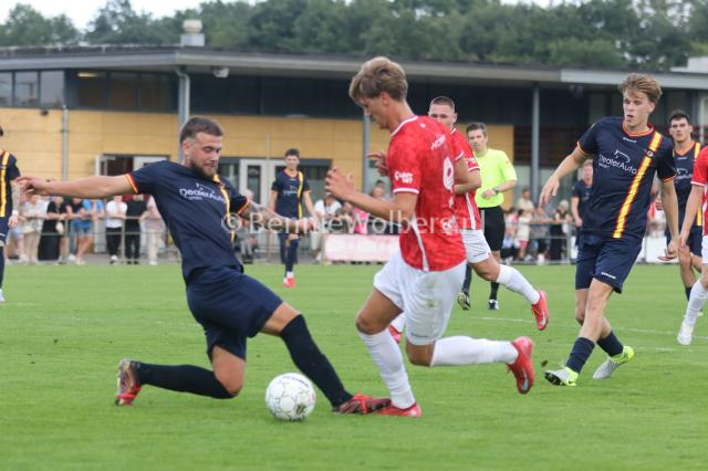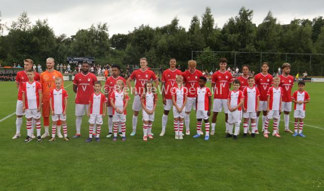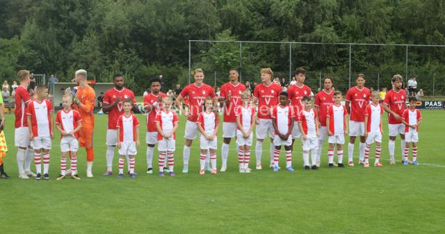 Tegenstand op sportpark Noord (Sc Angelslo) was een samengesteld regioteam dat eindigde in een12-2 overwinning voor de Profclub. FC Emmen, dat aantrad zonder Pascal Mulder en Jalen Hawkins, begon sterk aan de wedstrijd want binnen twintig minuten was doelman Lennon Ebeltjes (SVBO) al vijf keer geklopt.