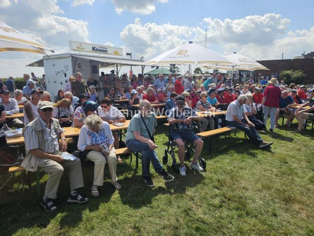 GEESTE – Na een fietstochtje van ongeveer 45 km arriveerden ondergetekende samen met twee dames zondagmorgen rond het middaguur in Geeste bij de Speichersee. Het voordeel van op de fiets komen is dat je dan geen problemen hebt bij het parkeren van jou auto. Op de fiets konden wij tot aan het podium komen, maar liepen helaas nog wel net de openingstoespraak van burgemeister Helmut Höke mis.
