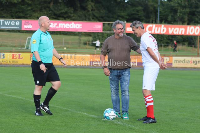 Marco de Haan verrichte de aftrap van deze bijzondere wedstrijd die door FC Emmen met 4-0 werd gewonnen