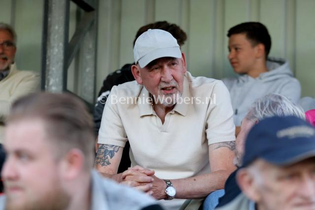 Ook John Koops, de eerste assistenttrainer in het betaalde voetbal van FC Emmen naast Theo Verlangen was bij de wedstrijd aanwezig.