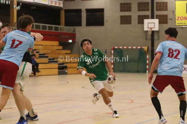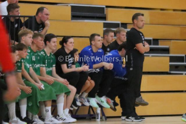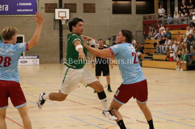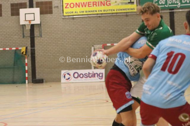 Ook in het eerste kwartier van de tweede helft kreeg E&O te veel doelpunten om de oren. Pas na het inbrengen van doelman Sjoerd Grit en Thijs Wittendorp, als aandrijver maakte de invaller vijf treffers, kwamen de groen-witten terug tot 28-33. Daarna raakte de tijd op.