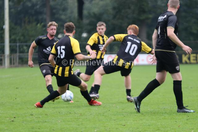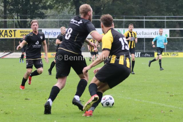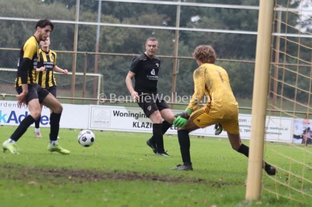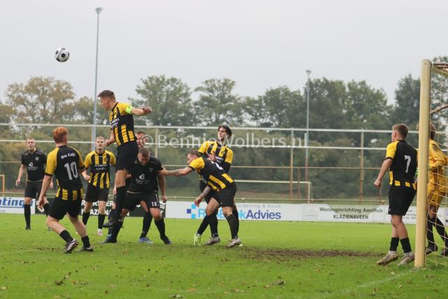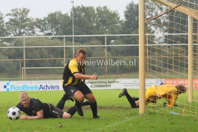 KLAZIENAVEEN – In de zaterdag 5e klasse H heeft FC Klazienaveen een goed gevolg kunnen geven aan de 7-2 overwinning op BSVV, want op het eigen sportpark De Planeet werd zaterdagmiddag Geel Zwart 25 uit Coevorden met een 2-0 nederlaag weer naar Coevorden teruggestuurd. De mannen van trainer Theo ten Caat stonden binnen tien minuten op een 1-0 voorsprong via Jesse Zwart. Na bijna een half uur spelen was het Roan Bruinsma die zijn ploeg naar een 1-0 voorsprong tilde. Dat werd ook de ruststand. In de tweede helft probeerde FC Klazienaveen wel alles om de wedstrijd vroegtijdig in het slot te zetten, maar Geel Zwart 25 weerde zich prima en kwam er zelfs nog een aantal keren gevaarlijk uit om de aansluitingstreffer te maken, maar de defensie hield de deur goed gesloten. Samen met DKB en SC Lutten voert FC Klazienaveen de ranglijstaan met 6 punten.