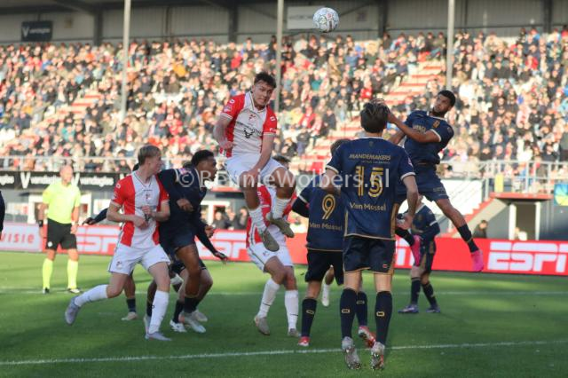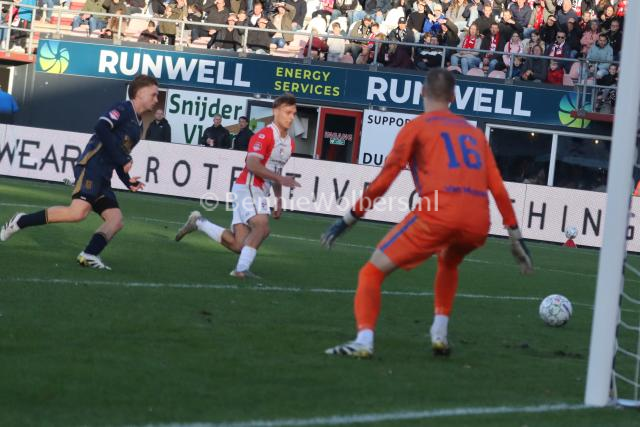 In het openingskwartier had de thuisploeg duidelijk meer balbezit, maar dat leidde niet direct tot grote mogelijkheden. De eerste uitgespeelde kans van de wedstrijd was zelfs voor RKC. Daniël van Kaam kon van dichtbij uithalen, maar doelman Luca Unbehaun redde knap en hield zijn ploeg op de been.