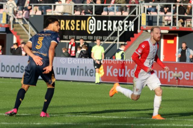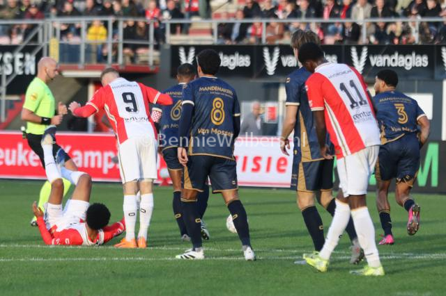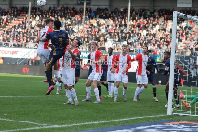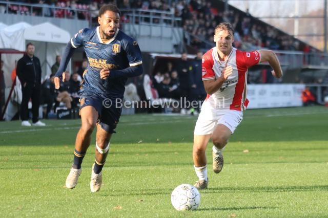 Hoewel de thuisploeg in de slotfase veel risico nam, leverde het lange tijd nauwelijks kansen op. Topschutter Romano Postema kende een ongelukkige middag, maar werd toch de held van de wedstrijd door in blessuretijd, uit het niets, de 2-2 binnen te schieten, na goed doorkoppen van Mulder.