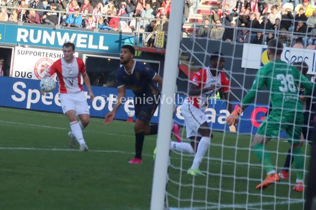 De thuisploeg had die tegenslag nog niet verwerkt of de bal lag opnieuw in het net. Pascal Mulder verloor aan de zijlijn te eenvoudig een duel, waarna Cleonise ongehinderd kon voorzetten. Roy Kuijpers stond op de juiste plek om de 1-2 binnen te schuiven. Met die stand gingen beide ploegen ook rusten.