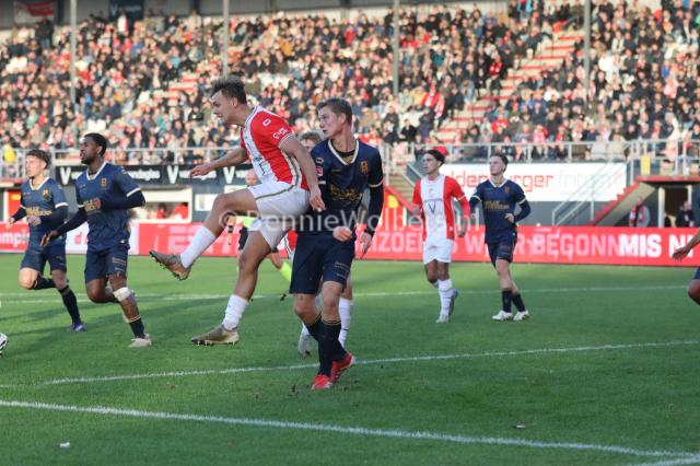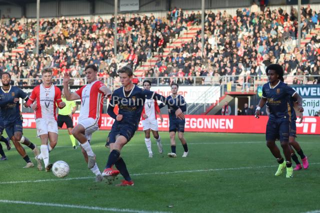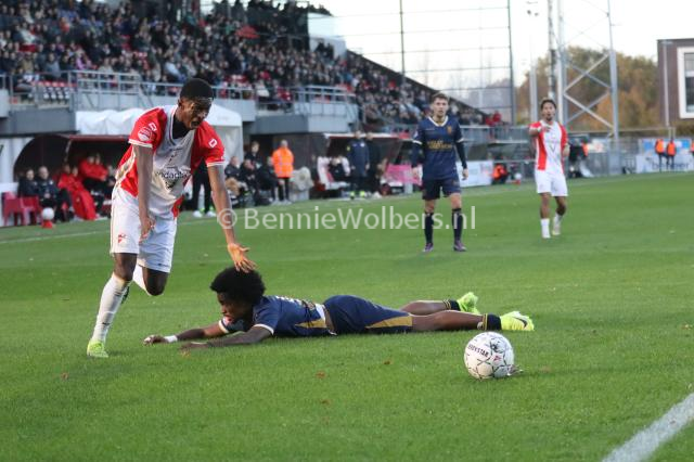Kort daarna moest Unbehaun opnieuw ingrijpen. Jordi Altena haalde van zo’n twintig meter uit en mikte richting de bovenhoek, maar opnieuw stond de Duitse doelman paraat en tikte hij de bal stijlvol over het doel. Het was niet de laatste keer dat Unbehaun redding moest brengen, want ook op doelpogingen van Denhilo Cleonise en opnieuw Altena toonde de doelman zich de sterkste.