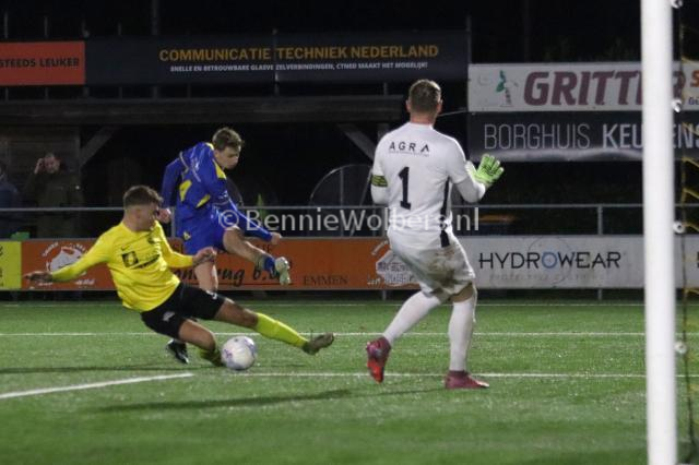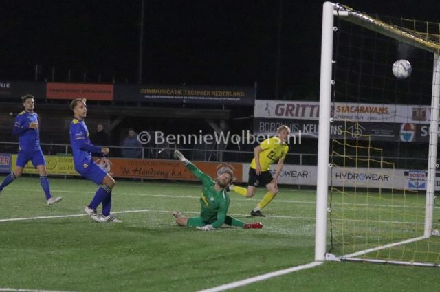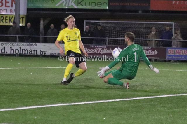 Vanaf dat moment kregen we meer grip op de wedstrijd, wonnen meer 2e ballen en speelden zelf ook hoger op. Dat resulteerde na het goed drukzetten vooruit van Sander de Grote, dat Joep Lambers de bal rond de 16m onderschepte en de bal alleen voor de keeper keurig binnenschoot: 1-0.