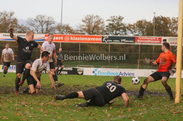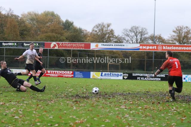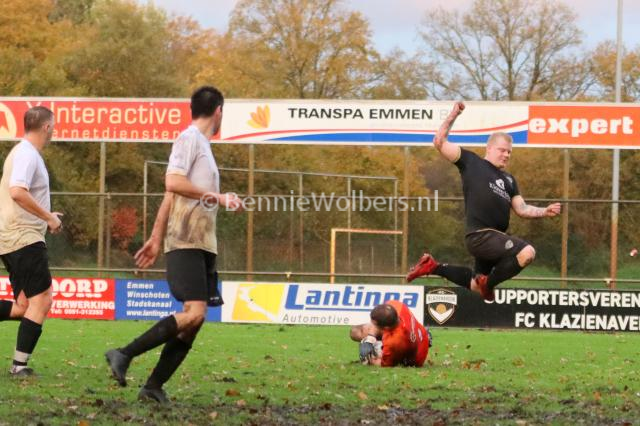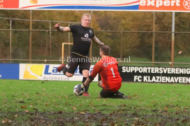 KLAZIENAVEEN – In deze zaterdag 5er klasse H deed koploper FC Klazienaveen tegen NKVV uit De Krim wat het moest doen. Via een 1-0 voorsprong bij rust door Staf Jagt, was het Nick Hoorn die in de 59e minuut zijn ploeg naar 2-0 schoot. Voor de the had het overigens wel al 2-0, 3-0 of zelfs 4-0 moeten zijn gezien de kansen terwijl NKVV vlak voor de the nog wel een grote kans kreeg maar de bal rakelings voorlangs ging. In de 2e helft ging NKVV op jacht naar de gelijkmaker maar na de 2-0 bleef tot het eind op het scorebord staan.