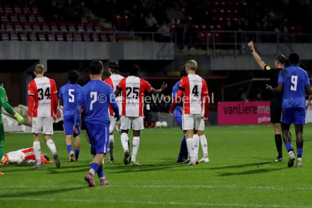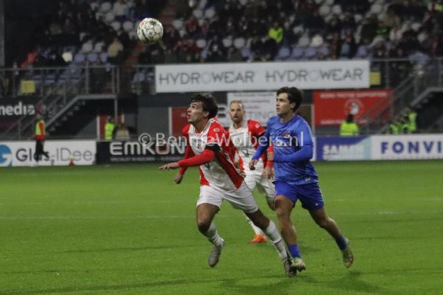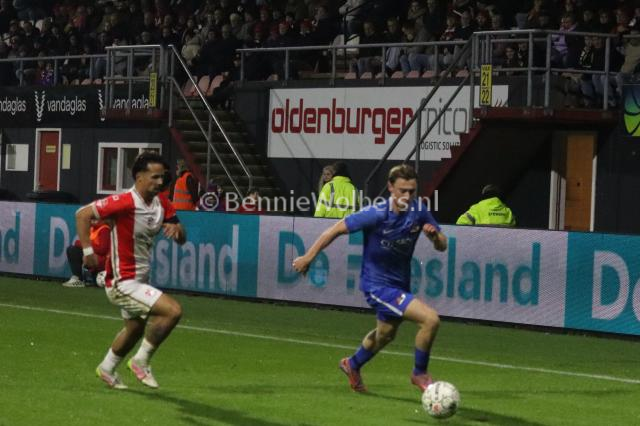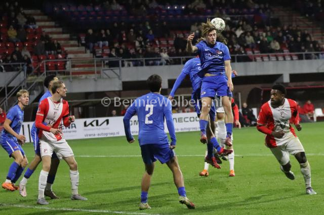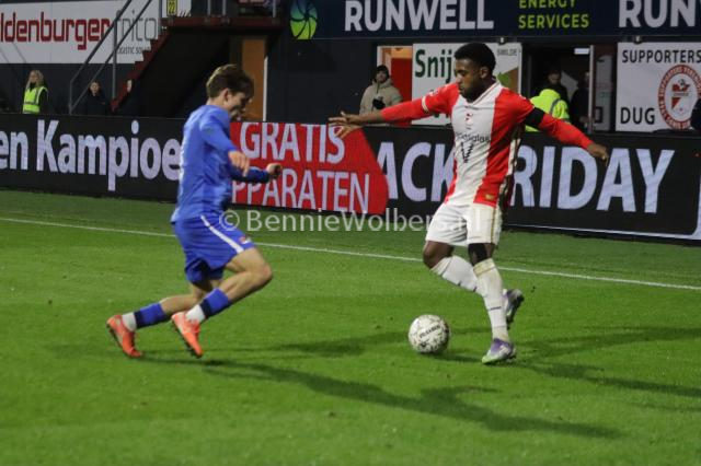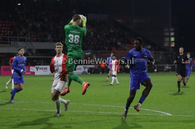 Vijf minuten later had het eigenlijk alweer 1-1 moeten staan. De mee opgekomen linksback Lukas Larsen kreeg de bal plotseling voor zijn voeten, maar leek daar zelf ook van te schrikken. Zijn schot vloog over. Het volgende moment was een prima lopende combinatie tussen Larsen, Djenahro Nunumete en Romano Postema. Laatstgenoemde scoorde ook, maar Larsen stond in buitenspelpositie. Geen goal.