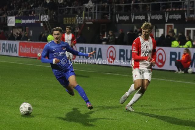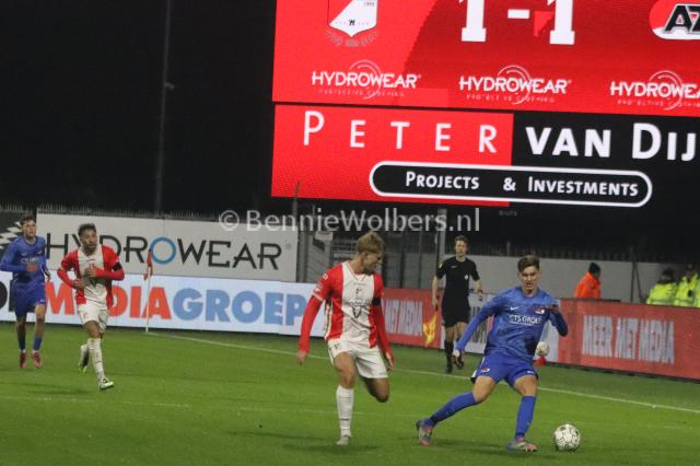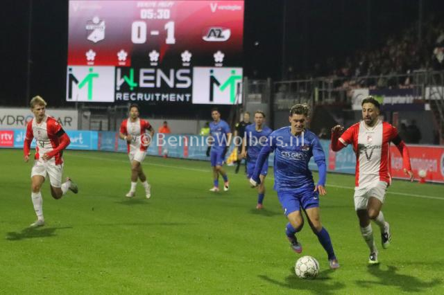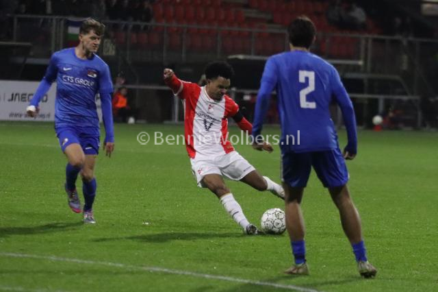 Na een lamlendig eerste gedeelte van de tweede helft kwam de wedstrijd vanaf minuut 70 opnieuw op gang. Een pracht van een treffer zorgde voor 3-1. Een mooie steekpass van Postema (foto) op zijn kompaan in de spits bracht Evina perfect in stelling. Een kiezelharde poeier liet Jong AZ-doelman Daniël Deen compleet kansloos.