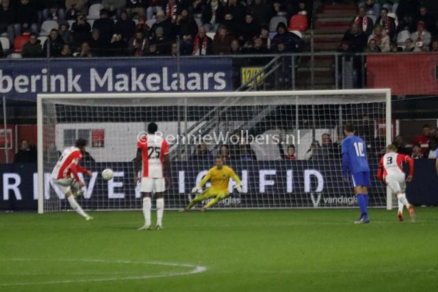 In minuut 26 versierde Alaa Bakir een strafschop. Hij wipte de bal op in de vijandelijke zestien en werd licht aangetikt. Reden genoeg voor de arbiter om de bal op elf meter te leggen. Aanvoerder Pascal Mulder nam zijn verantwoordelijkheid en schoot raak: 1-1.