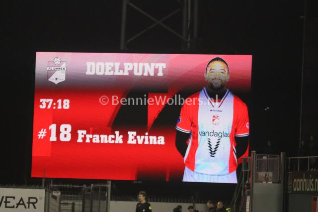 Het signaal voor FC Emmen om door te drukken. Franck Evina stond wel heel erg vrij en Djenahro Nunumete had dat ook gezien. Zijn voorzet was op maat en dus was het voor de spits een koud kunstje: orde op zaken en dus een voorsprong. (2-1)