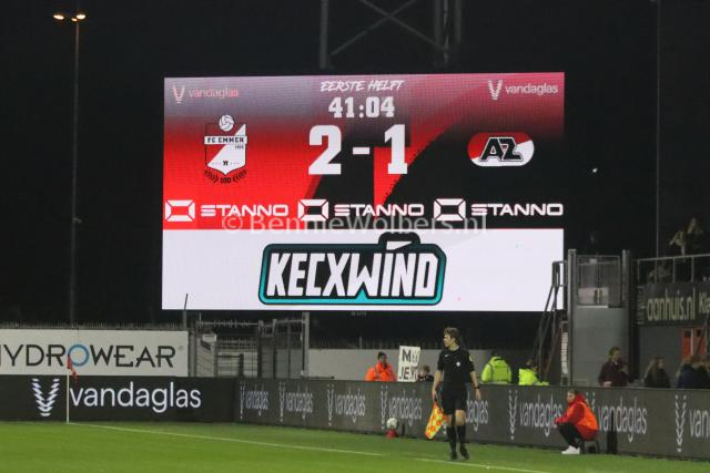 De start was beroerd voor FC Emmen. Al na vier minuten moest Luca Unbehaun de bal uit zijn doel vissen. Een vlot lopende aanval van Jong AZ eindigde bij Sem van Duijn en zijn bewaker, Luca Everink, was in geen velden of wegen te bekennen. Van Duijn kreeg alle tijd en ruimte en rondde bekwaam af: 0-1.