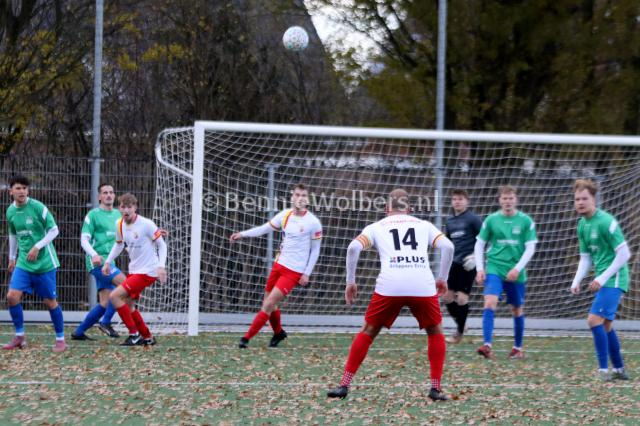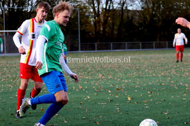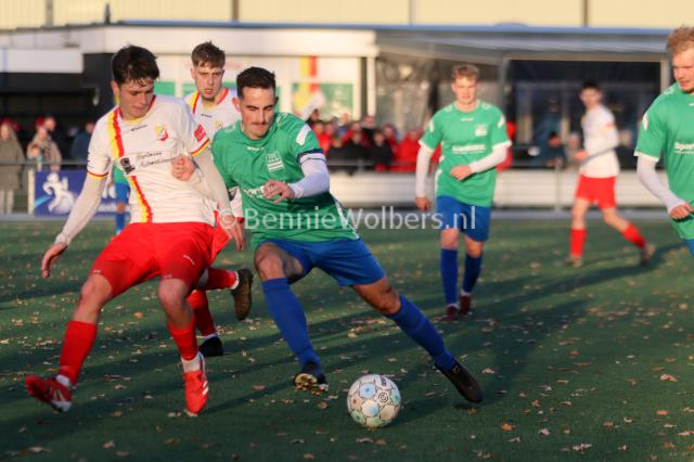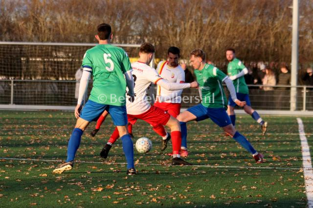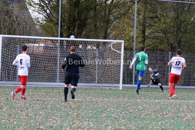 Een kwartier is het weer raak. Syb Lathouwers weet de aan linkerkant opkomende Tom Vehof te bereiken die de bal meeneemt richting achterlijn, het leer terug legt op de mee opgekomen Sem Poelman en knalde die de bal uit de lucht hoog in het doel. 4-0.