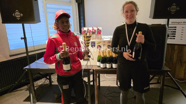 NIEUW DORDRECHT - Traditiegetrouw werd afgelopen woensdag - oudejaarsdag - voor de 49ste keer de Oliebollen cross van de vv DVC 59 gehouden. Dit vond met start en finish plaats op sportpark Bloemendaal. Naast een groep recreanten werd er gestart op de 5km en de traditionele 7,2 km. Het was mede door de felle wind die de lopers de laatste kilometer op de veldweg vol van voren kregen en juist in de moeilijkste fase ook de moeilijkste omstandigheden moest verwerken. Bij de mannen 40+ werd Joost Hindriks uit Schoonebeek winnaar in een tijd van 26/43 over de 7,2 km en bij de dames 40+ ging de hoofdprijs naar Linda Rakers uit Emmen in een tijd van 33.22. De in Klazienaveen wonende Keniaanse Mercy Jepkoeck was bij de dames 17+ de snelste met een voorsprong van 27 seconden op Manon Otter uit Wildervank die een tijd van 26.05 op de klok zette. Bij de heren 17+ kwam Frans van Dam uit Kampen en won met een voorsprong ruim 2 minuten voor Jesse Vos uit Emmen. Ook de jeugd uit Nieuw Dordrecht deed in verschillende leeftijdscategorieën van zich spreken en onderaan ziet u alle uitslagen op een rij: