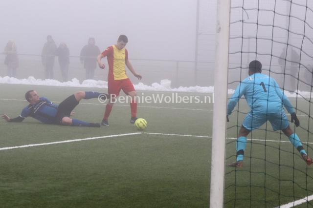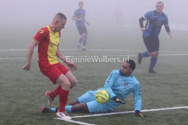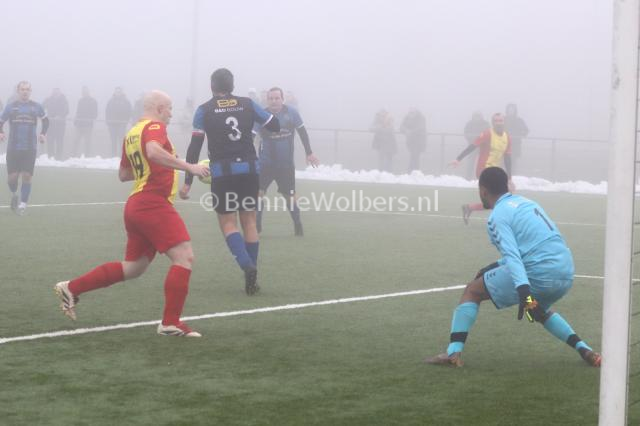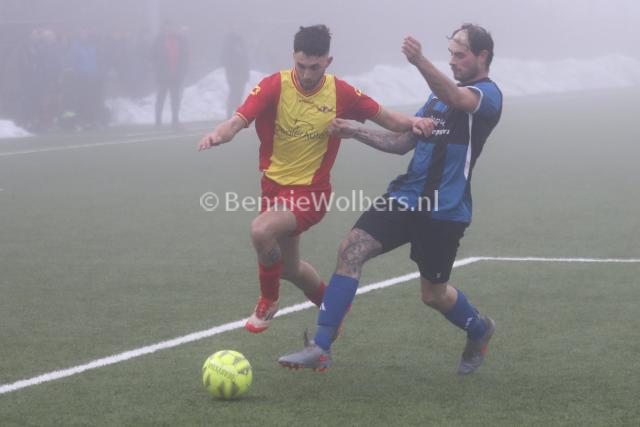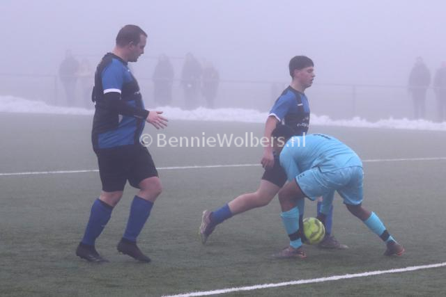 EMMEN - In de zaterdag 5e klasse H heeft de winterstop niet echt gevolgen gehad voor Sc Angelslo. De mannen van trainer Johan Sikkes wisten zaterdag op een in dikke mist gehuld kunstgrasveld op sportpark noord met 2-0 van hekkensluiter NWVV te winnen. Tot aan de thee wisten de Nieuw Weerdingers de Sportpark Noord bewoners nog wel van doelpunten af te houden, maar na een 0-0 ruststand werd de druk te groot. Het was het Glen Eding die een kwartier voor tijd de score opende en in de slotfase bepaalde Abe de Jong de eindstand op 2-0.