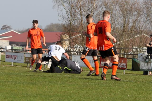 De scheidsrechter van dienst trok een duidelijke lijn: hij liet veel toe. Dit zorgde voor een fysieke wedstrijd met stevige duels. Vlak voor het rustsignaal wist de thuisploeg opnieuw een gaatje te vinden in de defensie van de gasten. Na een afgeslagen corner gaf Roy Sibon een diepe bal op Max Heijnen die de bal met de borst in één keer doorgaf op de vrijstaande Wesley Heijnen. Door de bal direct te schieten kwam de bal buiten bereik van keeper Wesley Groen in de rechterbenedenhoek. Direct daarna klonk het laatste fluitsignaal voor de rust.