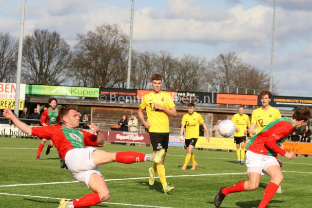 BARGER OOSTERVELD – Het is SVBO zondagmiddag niet gelukt om koploper Bon Boys een pootje te lichten. Op het kunstgras aan de Parkstraat wisten de mannen uit Haaksbergen met 1-0 te winnen. Het doelpunt van Tom ter Hogt viel al in de 21e minuut van de 1e helft, nadat SVBO daarvoor al een tweetal mogelijkheden niet in klinkende munt wist om te zetten. Ook in de 2e helft bood SVBO de koploper veel tegenstand maar om het uiteindelijke doelpuntje dat de geelzwarten gezien de hele wedstrijd zeker wel hadden verdiend, maar niet wilde vallen. Eindstand dus 0-1 en SVBO komende zondag in Vroomshoop tegen de plaatselijke boys proberen die nederlaag snel te doen vergeten.