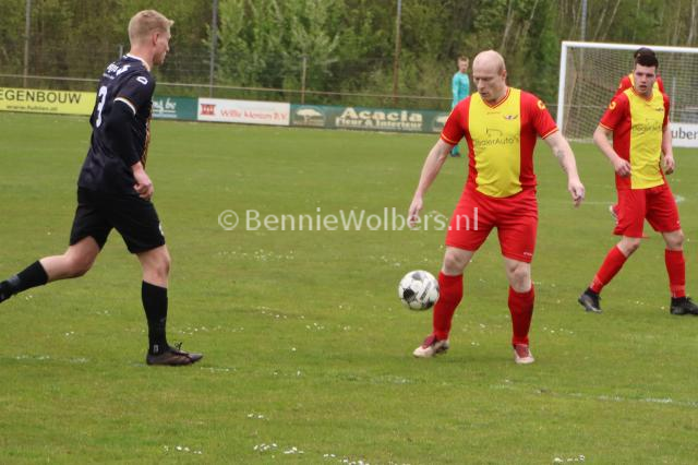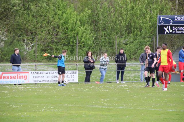 Het spel golfde daarna veel heen en weer met veel lange ballen. In de 35e minuut wordt het 1-1 mooi via Frank Dokter die de bal met een volley in de bovenhoek plaatst. Klazienaveen moet met een man minder spelen door een rode kaart van Jorn Wanders. Angelslo krijgt nog een paar kleine kansen maar weet niet te scoren In de 2e helft komt Angelslo in de 54e minuut na een goede actie van Jeroen Smit en een voorzet op Sebas Kroezen op 2-1.