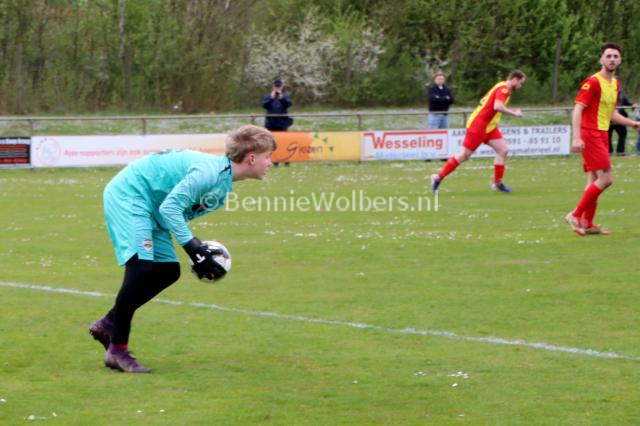 Voor Sc Angelslo trainer Johan Sikkes was het toch wel een bijzondere wedstrijd, want na de rode kaart van Wanders viel zijn net 16 jaar geworden zoon Ivo Sikkes in het doel bij de Klazienaveners waarin ook zijn andere zoon Bram in het veld stond..
