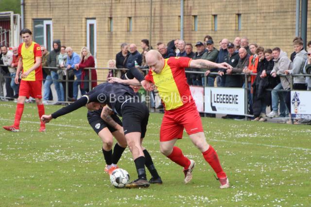 EMMEN – Met een 3-2 overwinning op FC Klazienaveen wist Sc Angelslo in de slotfase drie bb4elangrijke punten in eigen huis te houden. De wedstrijd begon overigens voor Sc Angelslo minder goed want buurman Klazienaveen nam na een klein kwartier spelen via Sem de Vries een 1-0 voorsprong die een afgeslagen bal binnen.
