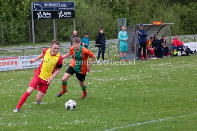 EMMEN - Zowel in de stand als voor de derde periode staat de deur nog helemaal open voor Sc Angelslo na een 4-1 overwinning op VVAK. Na een rustige eerste helft is het op slag van rust Yoran Reinderink die de 1-0 scoorde en Frank Dokter nog voor de thee 2-0 ruststand binnenschoot. Er kwam na de thee nog wel een reactie van VAKO middels een treffer van Robbin Zomer, maar na iets meer dan een uur spelen kwam ook Yoran Reinderink weer op gang want met twee treffers op rij maar hij zijn hattrick vol zorgde voor een 4-1 eindstand.